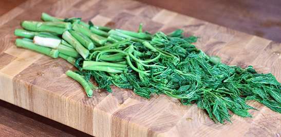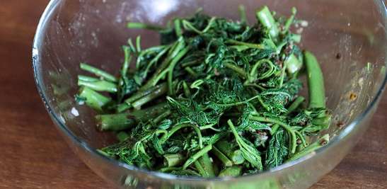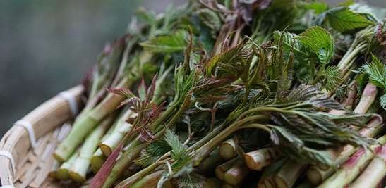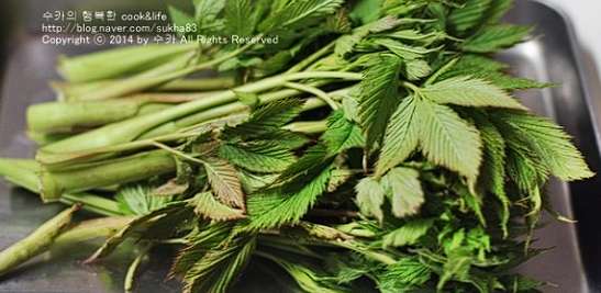 인삼과 두릅, 소고기 등의 세 가지 맛이 난다고 하여 고기나물, 삼나물 등의 여러 이름으로 불리는 눈개승마는 어린 순을 이용해 나물이나 무침, 볶음, 국, 탕, 비빔밥 등의 다양한 요리의 식재료로 이용되는데요. 사포닌을 비롯하여 단백질, 베타카로틴, 그리고 칼슘과 철분 등의 무기질의 함량이 높아서 체내 유익한 다양한 작용을 하는 것으로도 알려진 바 있습니다.