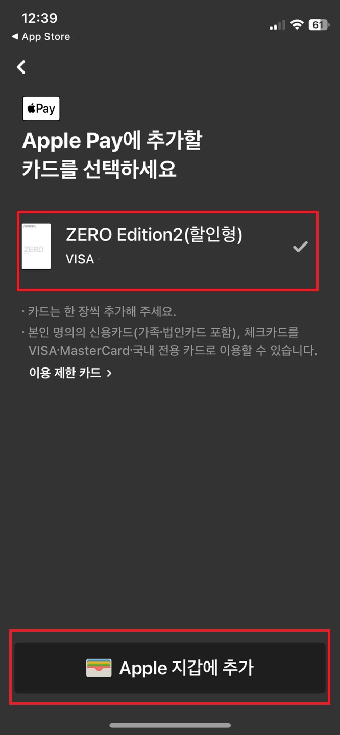 1. 아이폰에 애플페이를 등록하고 난 뒤, 다시 애플페이 등록을 다시 진행해줍니다.